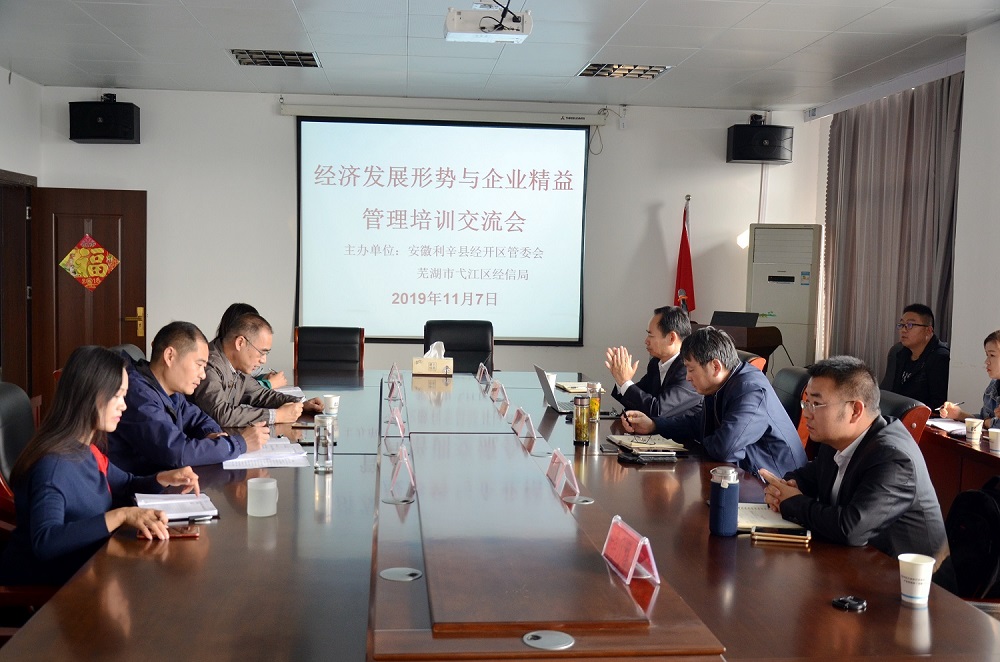 2019年11月7日下午,由安徽利辛縣經(jīng)濟(jì)開發(fā)區(qū)管委會(huì)和蕪湖市經(jīng)信局聯(lián)合主辦的“經(jīng)濟(jì)發(fā)展形勢與企業(yè)精益管理培訓(xùn)交流會(huì)”在利辛縣經(jīng)開區(qū)管委會(huì)會(huì)議室圓滿結(jié)束。