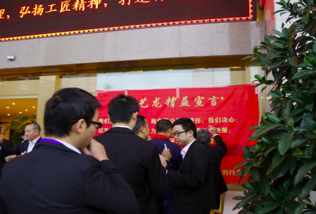 會議最后龔總帶領(lǐng)所有龍馬家人與項目組成員到主席臺前,進行集體宣誓并簽下自己的承諾。誓師大會在一聲聲莊嚴的宣誓聲中落下帷幕。