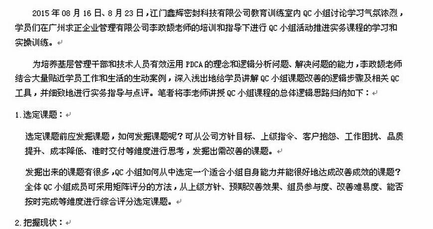 江門(mén)鑫輝密封科技2015年QC小組活動(dòng)推進(jìn)